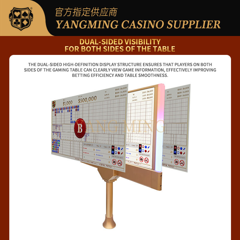 Casino-displayDe LED-verlichting is helder en heeft een slank, modern ontwerp, dat zorgt voor een duidelijk zicht vanaf beide zijden van detabelHet is gebouwd voor continue casino werking, het levert stabiele prestaties, levendige graphics en brede kijkhoeken.meertalig scherm, en logo-branding om de efficiëntie van het spelbeheer en de algemene presentatie van het casino te verbeteren.